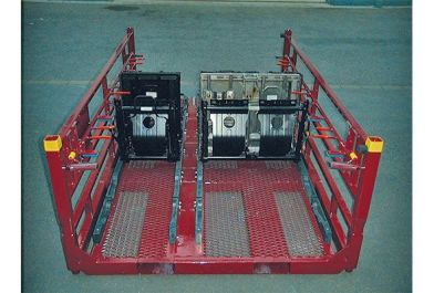 Beim Einsatz von Doppelhornschanieren ist eine sichere Blockstapelung mehrerer Paletteneinheiten möglich und die Verdeckelung diebstahlgeschützt