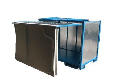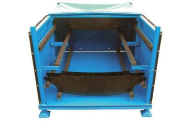Stahlladungsträger mit Schaumeinlagen. Bauteilsicherung über die Schäume, die letzte Lage wird über den Deckel gesichert